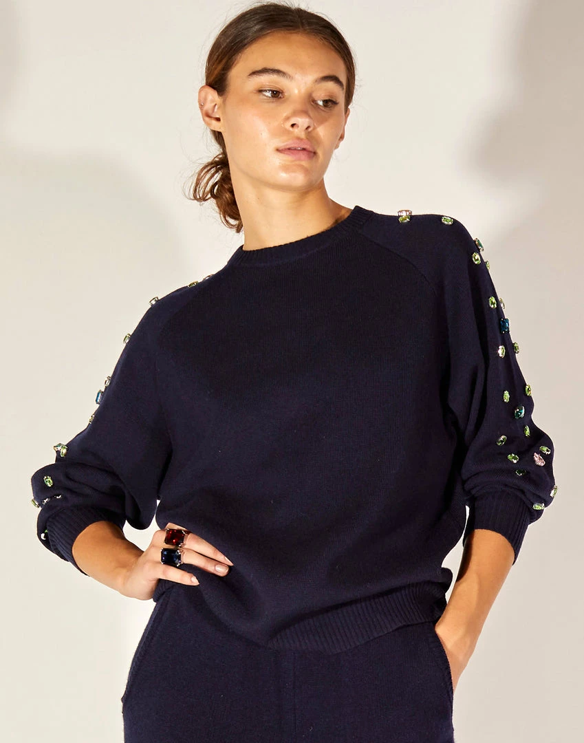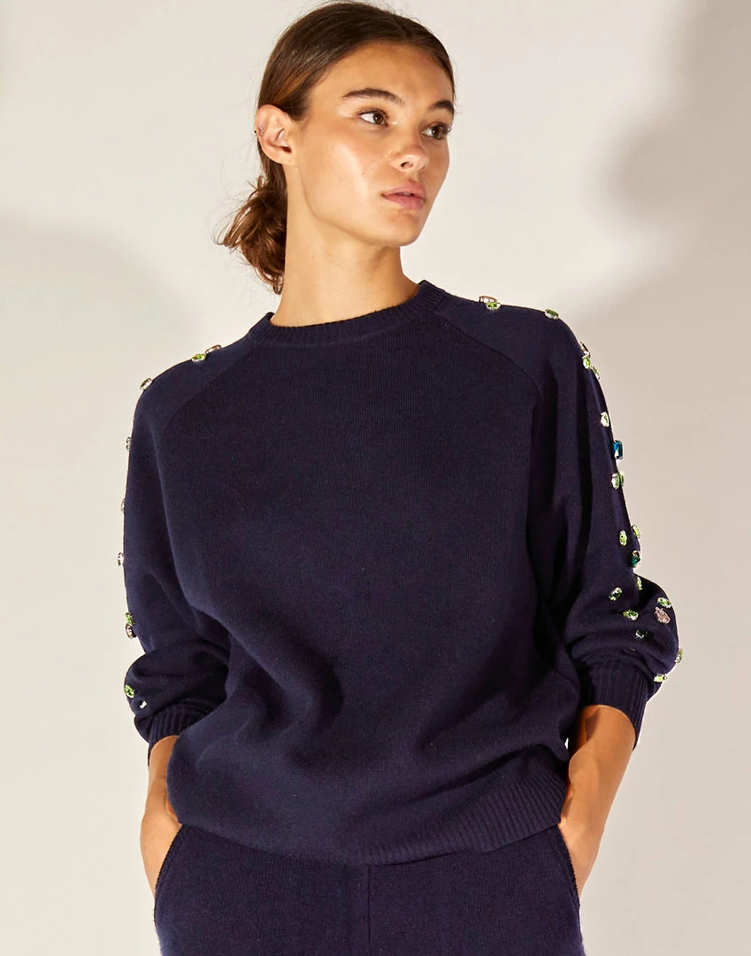 Cashmere blend sweater with gem details.