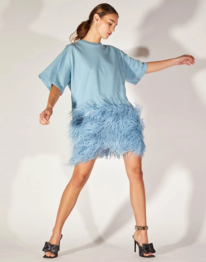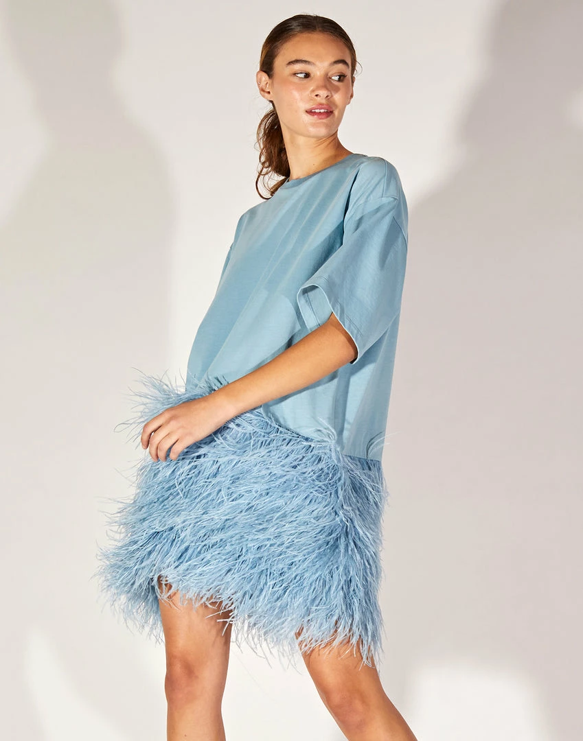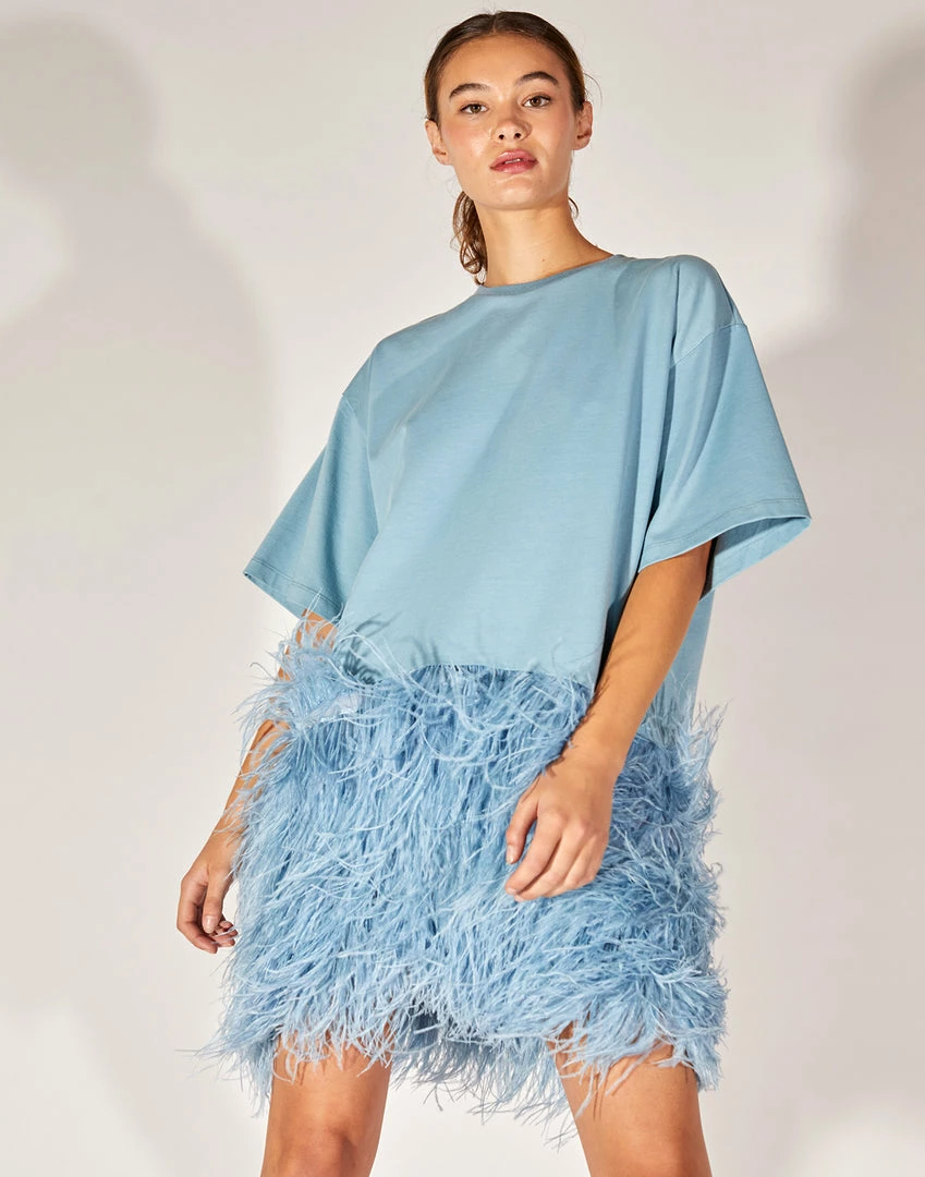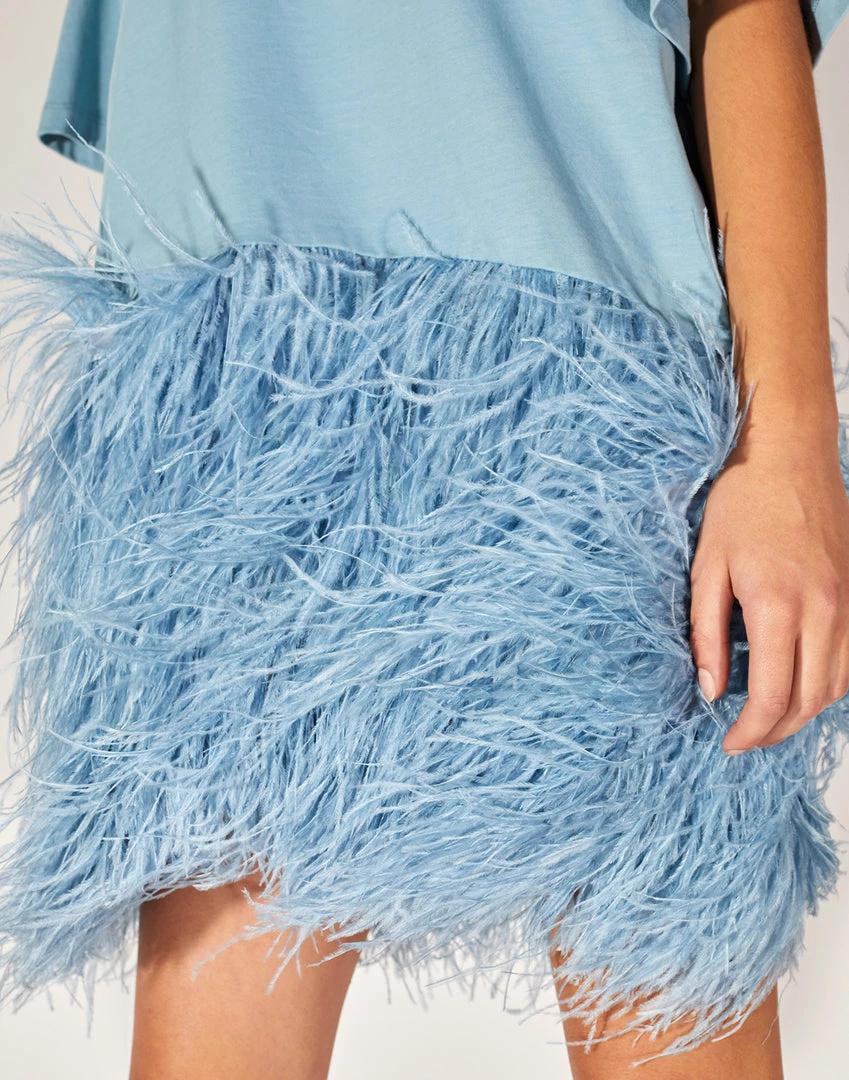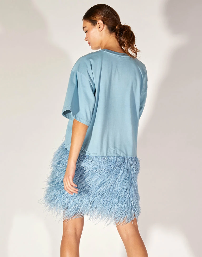 Soft jersey t-shirt with ostrich feather skirt.Â