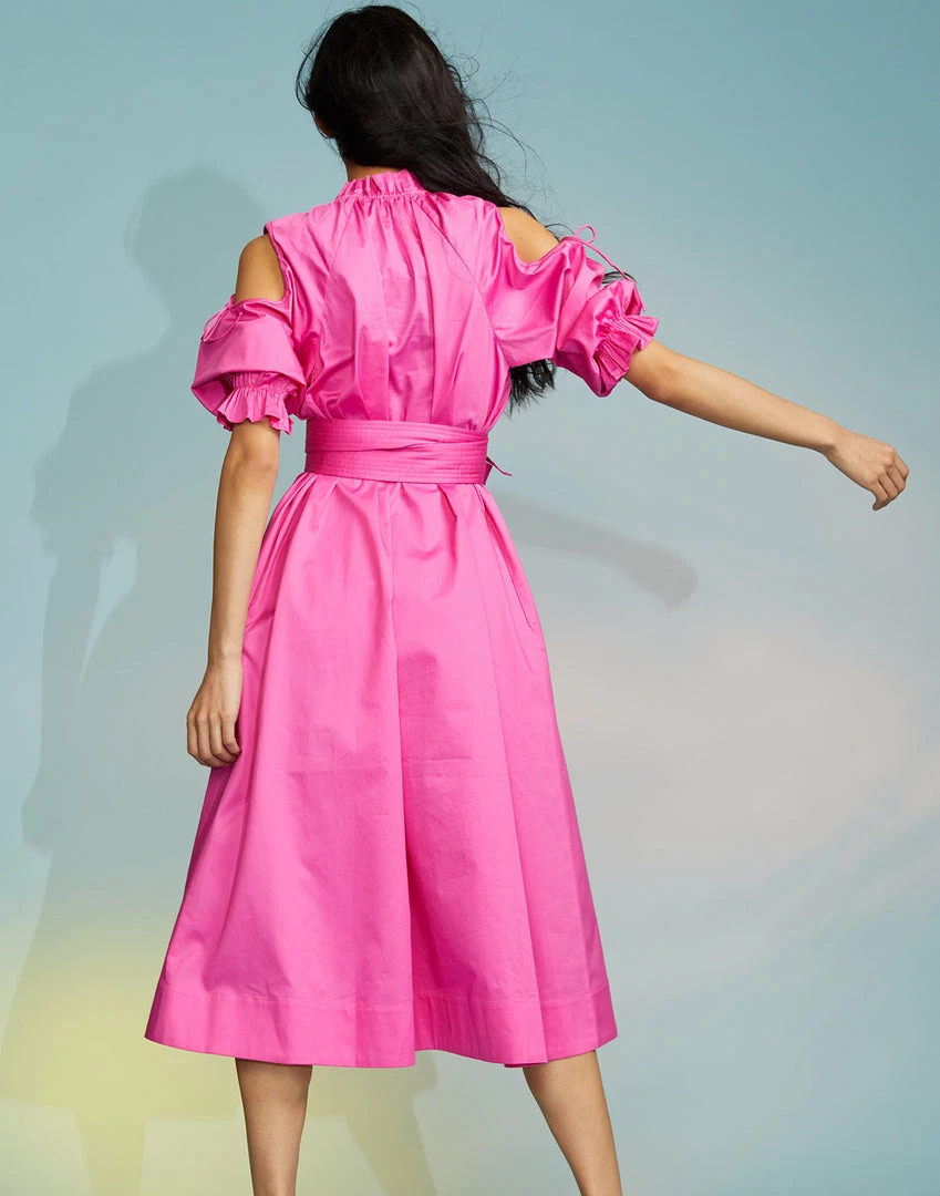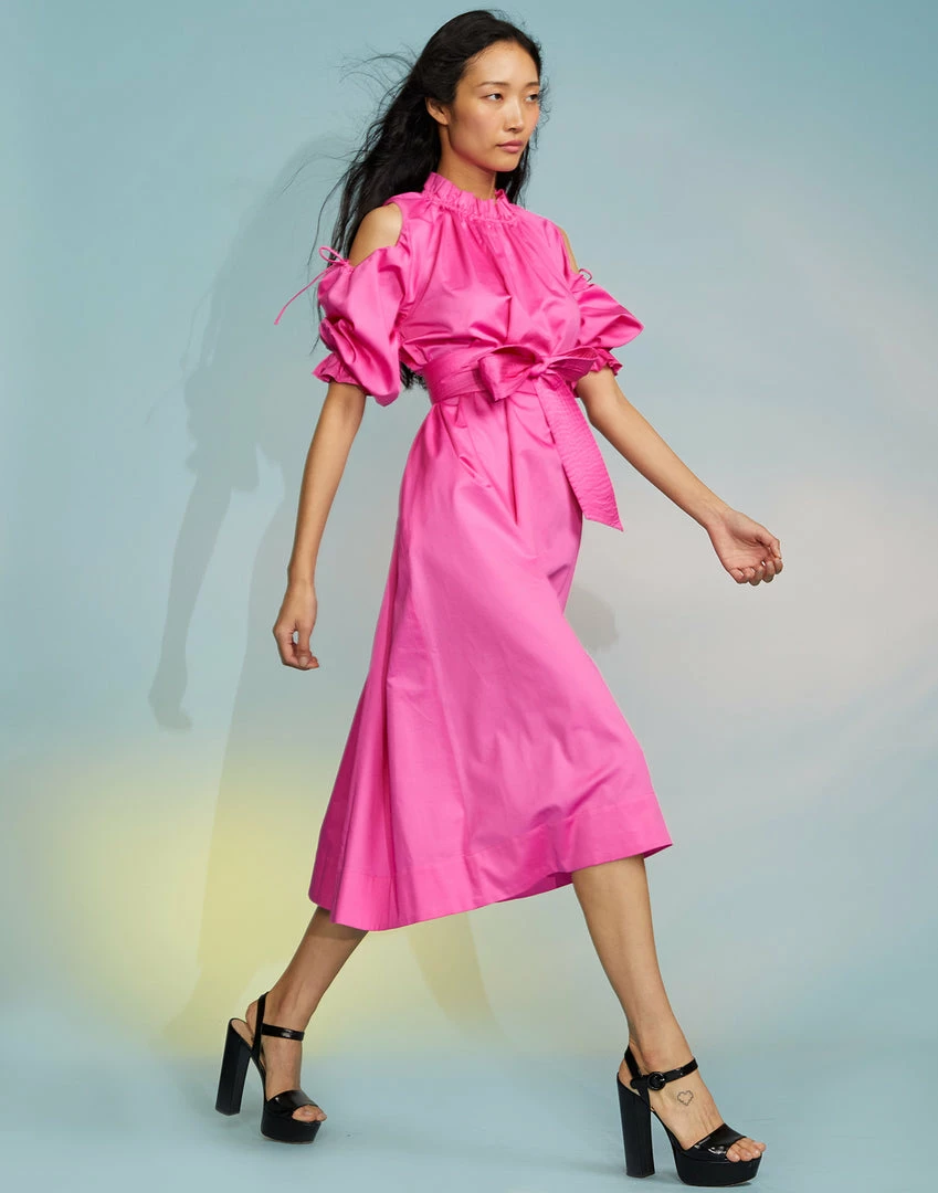 - Elbow length sleeves with ruffle detail and elasticized cuffs