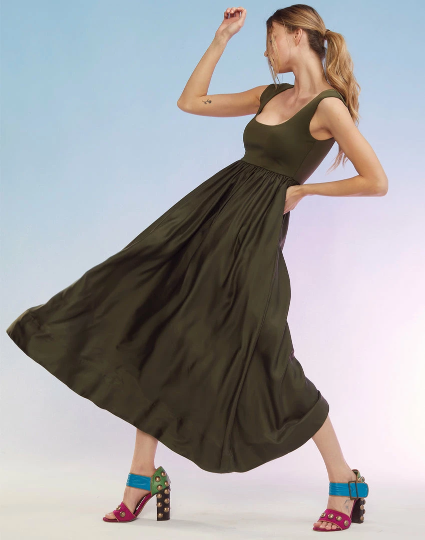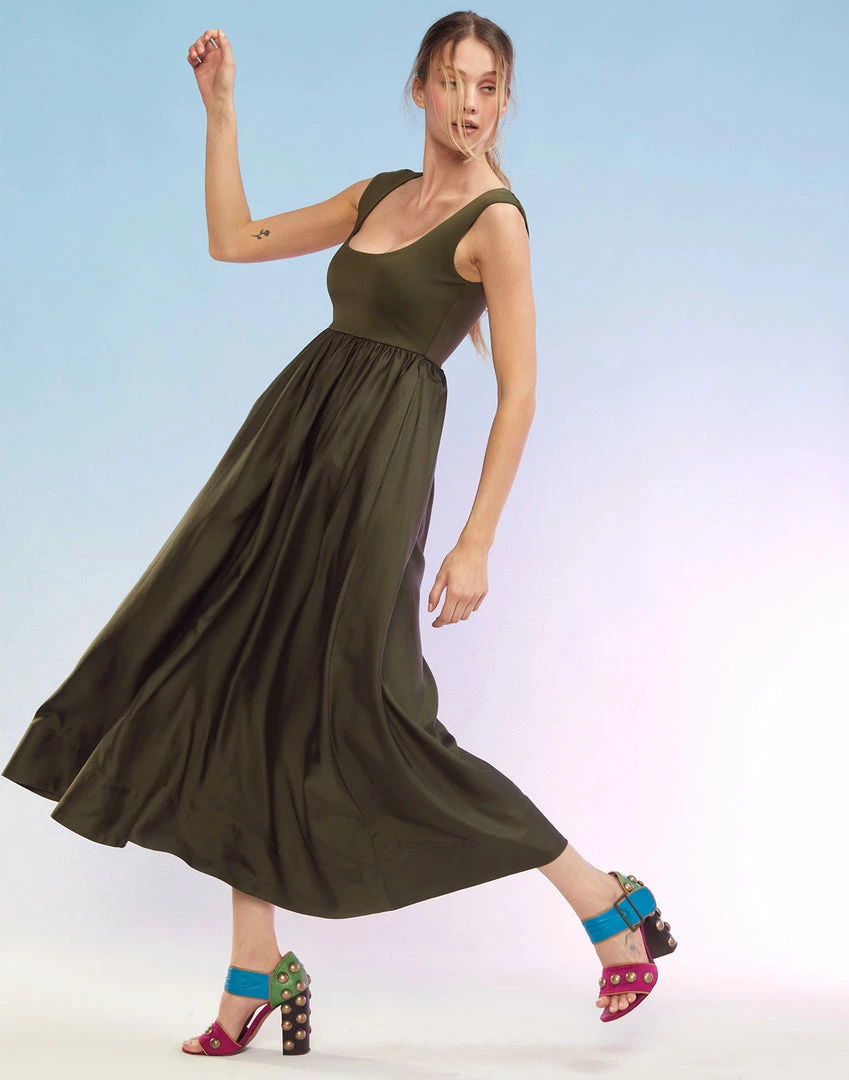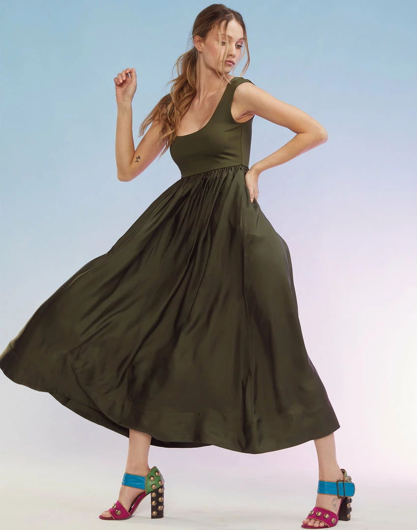 The Ultimate Pretty Meets Sporty! Sleek and sporty lycra with silk twill skirt.Â