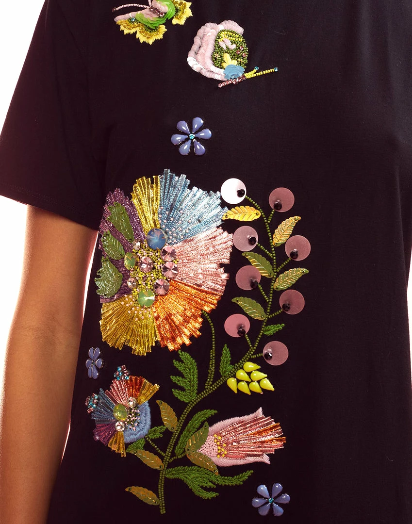 - Hand embroidered butterfly and floral