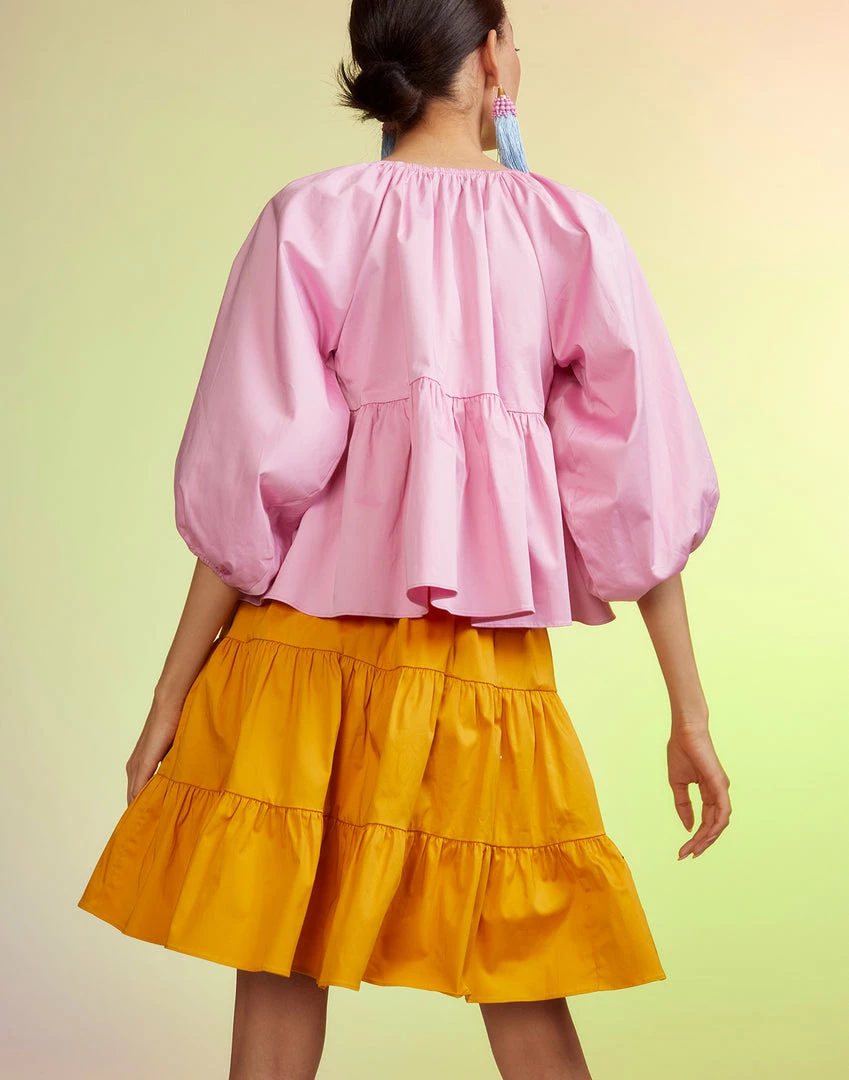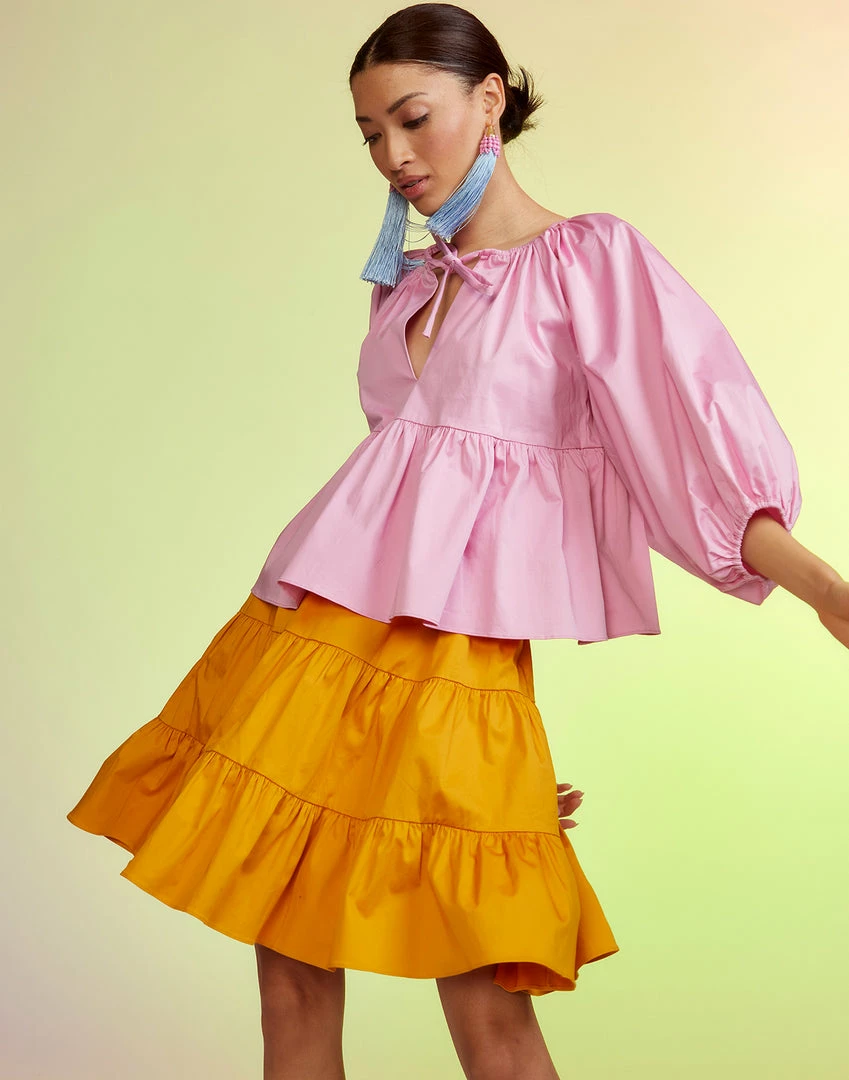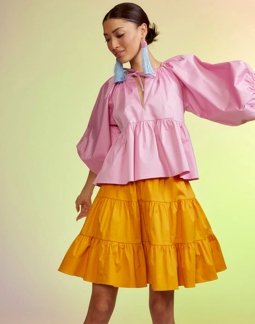 Yellow cotton tier skirt.