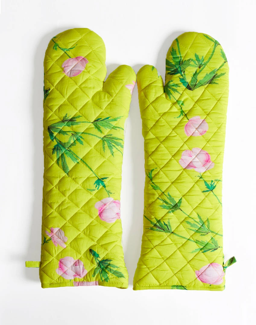Extra long quilted oven mitts.