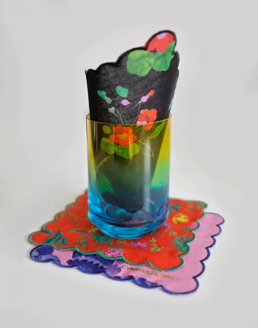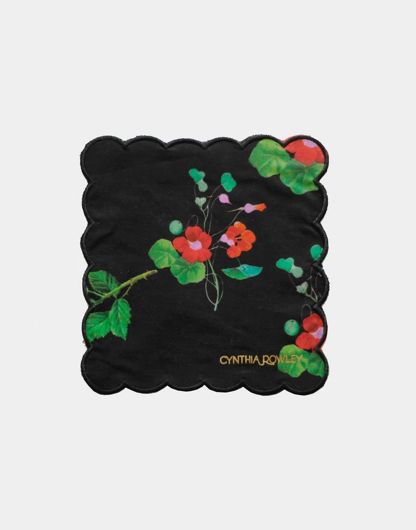 Printed cottonĀ cocktail napkins with scallop embroidered edge.Ā