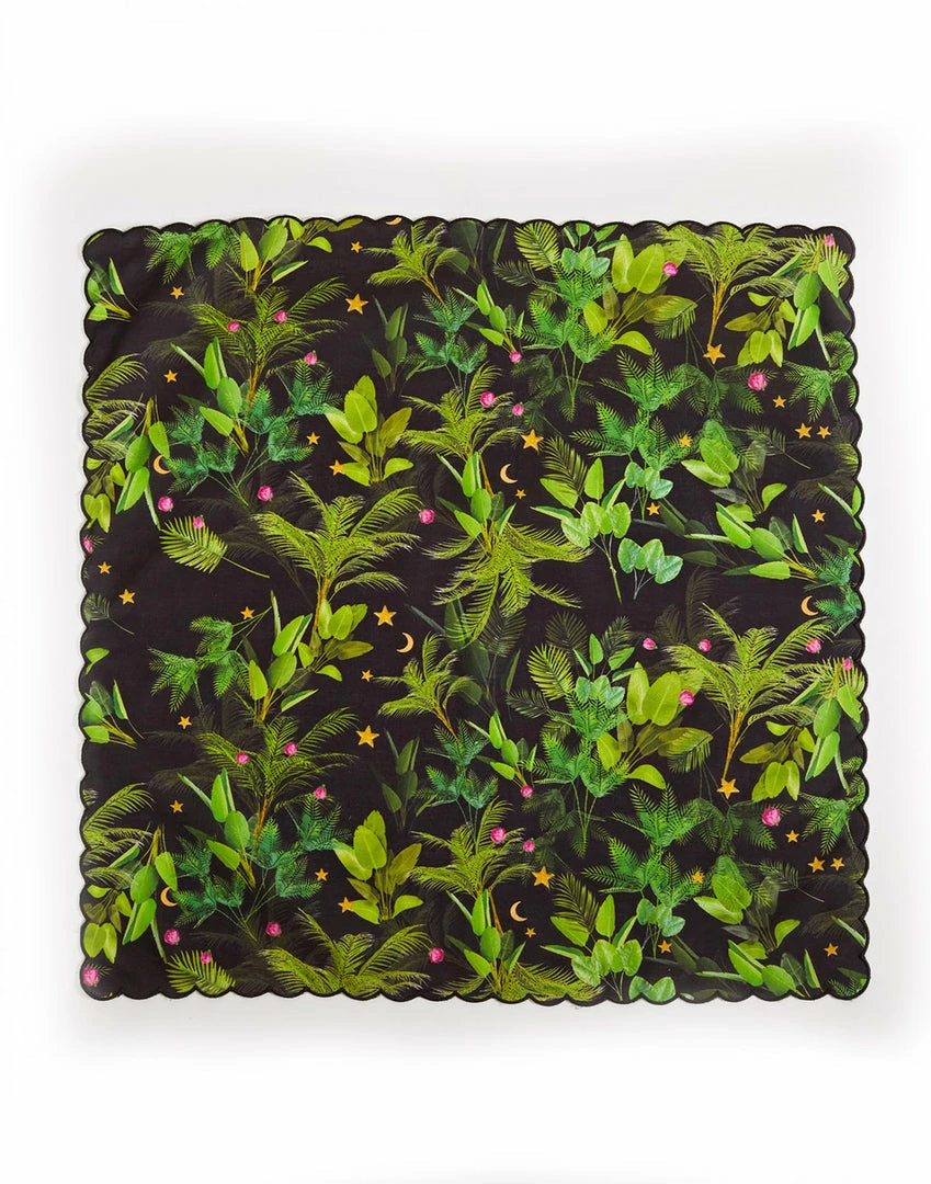 Printed cotton dinner napkins with scallop embroidered edge.Â